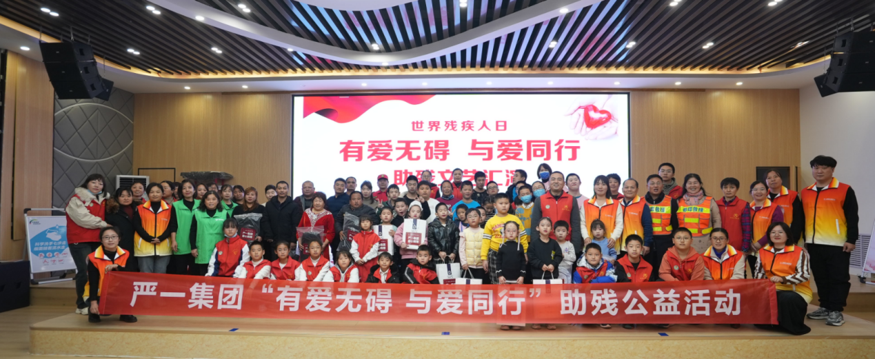 2023年11月25日,严一集团与衡水市残联、衡水市春晖义工协会,联合举办了“有爱无碍,与爱同行”助残公益联欢会,与肢残人协会、乐启家园、康蕾特教等机构残疾人代表一起共同庆祝“世界残疾人日”。市残联副理事长吴广彦、春晖义工会长陈奇峰、衡丰社区主任关辉,严一家爱心慈善基金会会长韩晓波等相关领导与爱心人士参与了会议。