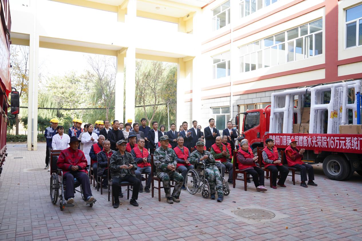 桃城区退役军人事务局党组书记、局长崔红顺、桃城区退役军人事务局副局长刘邦春、衡水市光荣院院长张国志、严一集团董事长贾旭刚、严一家爱心基金会会长韩晓波、退役军人事务局与严一集团工作人员,以及光荣院可亲可敬的各位老前辈共同见证本次捐赠仪式。