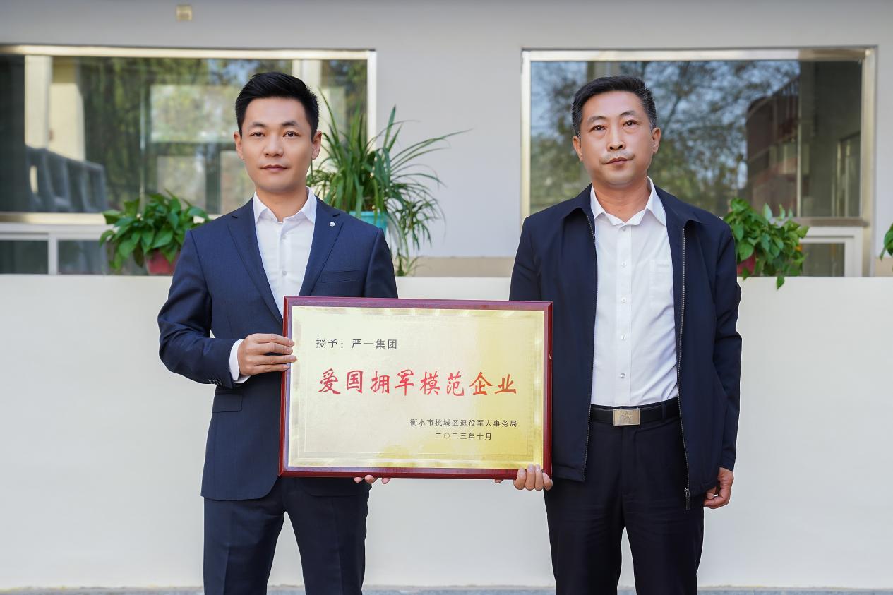 之后,桃城区退役军人事务局党组书记、局长崔红顺为严一集团爱心捐赠授牌。